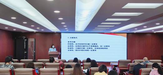 然后张晶晶老师介绍了三位主讲老师的个人经历与科研成就,接着三位老师依次进行了分享。李静老师结合自身项目结项工作的经验,从结项流程、结项注意事项和结项申请书展示分享三个环节进行讲述。刘媛老师讲述了结项流程的三步骤和结项注意事项的三个方面,最后对结项申请书进行了展示分享。