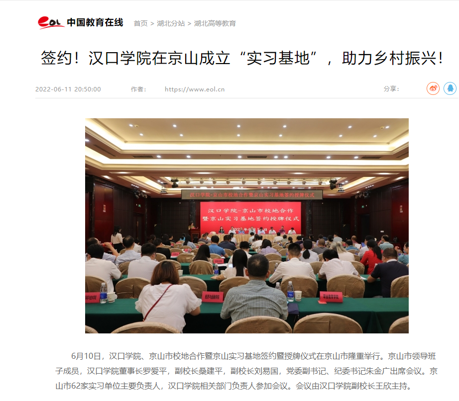 【中国教育在线】签约!im电竞平台app下载在京山成立“实习基地”,助力乡村振兴!