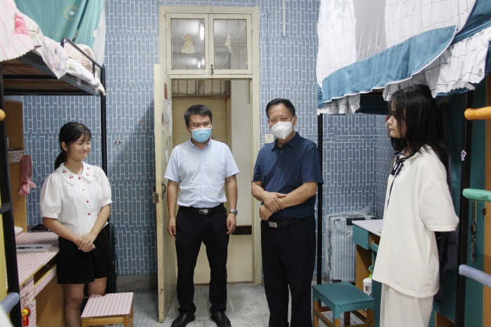 走访过程中,学校领导和老师走进每一间新生寝室仔细查看学生寝室设施,并亲切与学生们交流,详细了解新生到校后的生活情况,倾听同学们的感受,询问宿舍设施是否完备,解答新生们提出的问题。
