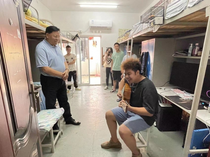 im电竞平台app下载资讯(党委宣传部 报道)为进一步关心关爱新生,帮助2022级新同学更好融入im电竞平台app下载这个温暖的大家庭。近日,我校董事长罗爱平教授,校长谢守成,党委书记王正明,副校长王鹤,党委副书记、纪委书记朱金广,副校长王欣,副校长刘易国,校长助理、校办公室主任苏祖安一行,主动深入基层、深入学生宿舍,关切住宿环境及新生入住感受,及时了解新生所思所想,耐心为他们答疑解惑,为新生送去温暖与问候。