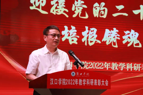 副校长桑建平宣读《关于表彰2021-2022学年课堂教学质量优秀奖获奖教师的决定》和《关于表彰2021年度科研工作先进单位和个人的决定》