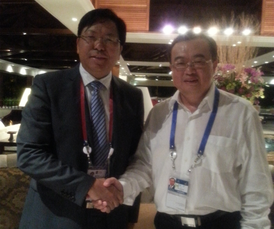 董事长罗爱平与泰国副总理尼瓦塔隆·汶颂派讪(中)亲切交谈并合影留念