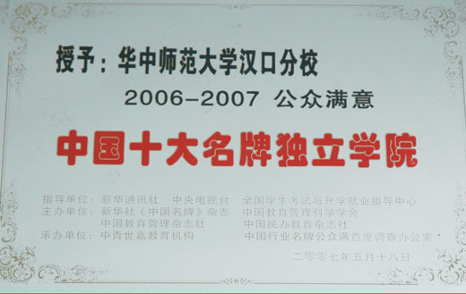 2006年、2007年连续两年被评为“中国十大名牌独立学院”