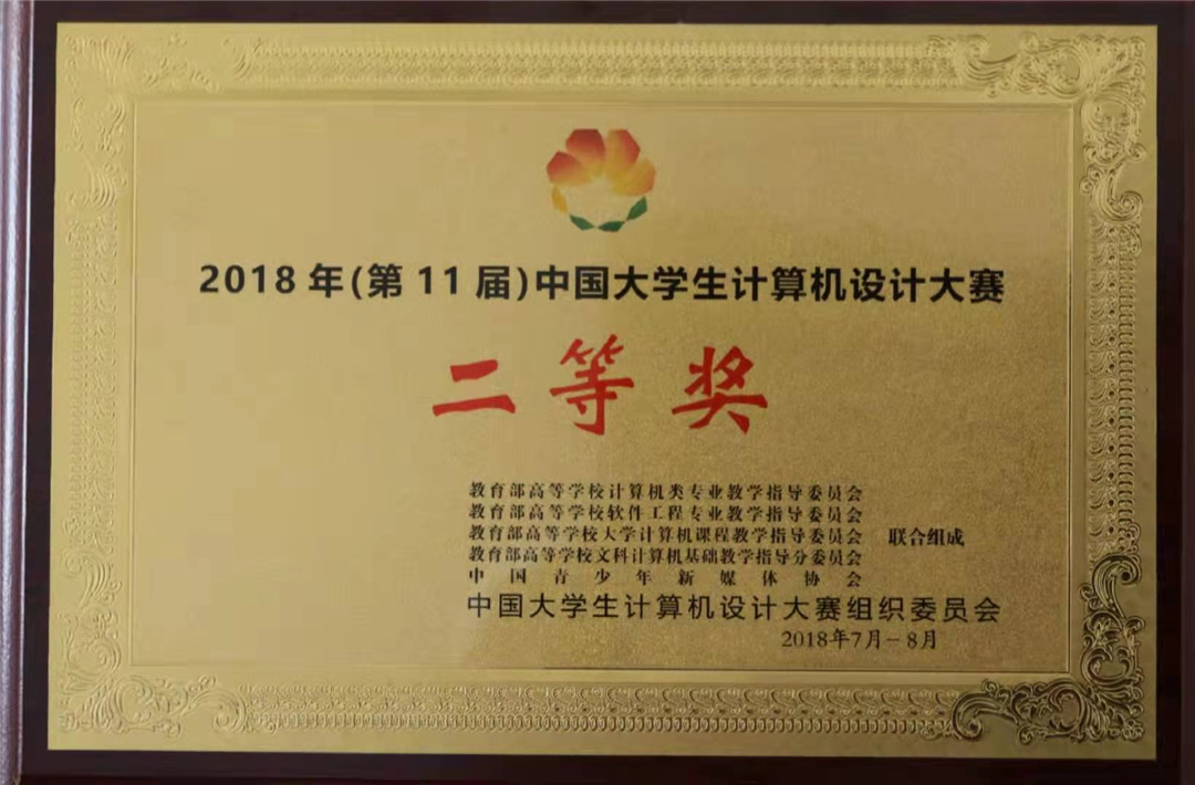 2018年,学校获中国大学生计算机设计大赛“二等奖”